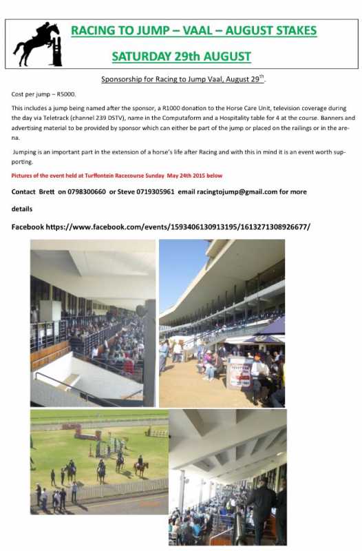 Sponsorship for Racing to Jump Vaal, August 29th.