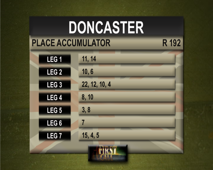 Doncaster Race 1.. Difficult race.. But some Our Joy has good sorts in Kassia and Besharah in the form line.. E/W at 14/1..