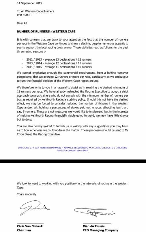 Re: Western Cape racing under severe and need owners