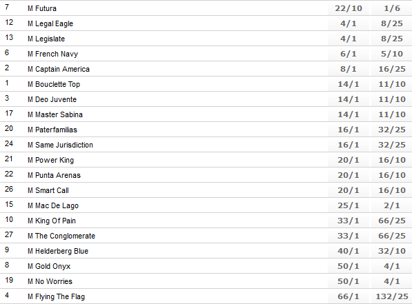 Legal Eagle carries 6 kg's more than in the July............and he could not beat Futura then - same applies to French Navy