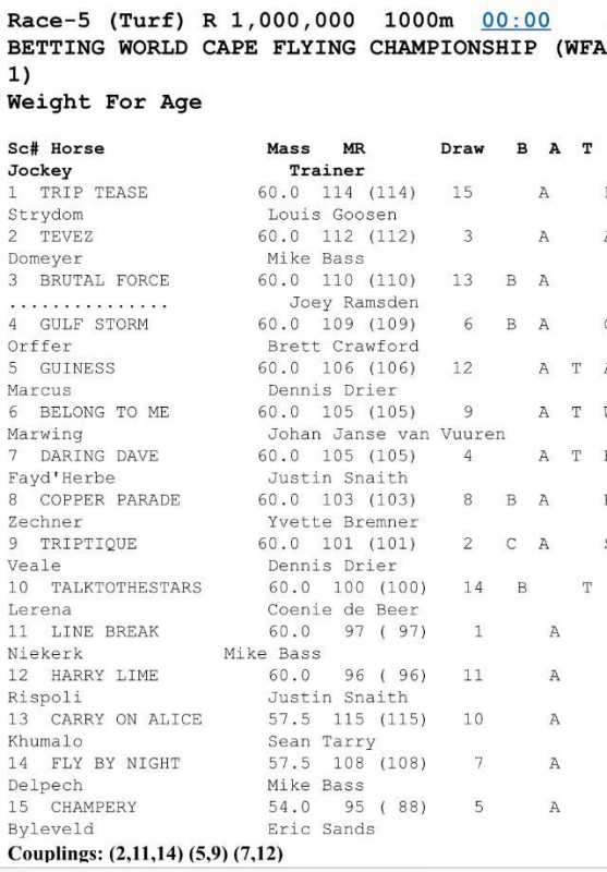 Louis took Triptease down early to acclimatize and must have been disappointed to be scratched at start last time,and deserves to win this ..................I think might be too fast for Brutal Force over the 1000m!