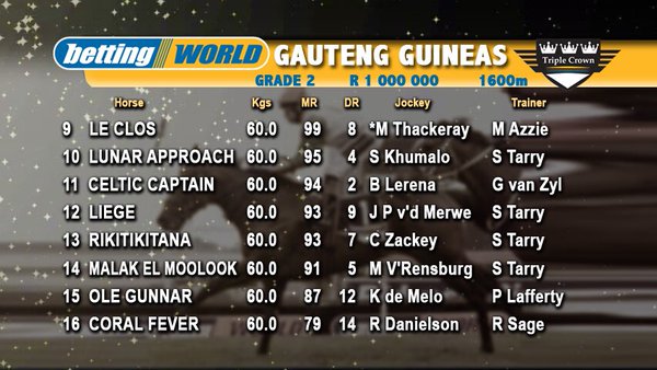 The final fields for the Gr 2 Betting World Gauteng Guineas and