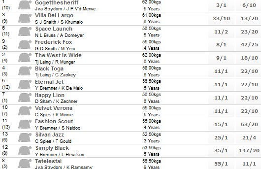 strong field, many of them raiding from Cape Town.