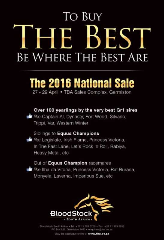 Entry forms for the Bloodstock South Africa National Two Year Old Sale are available on our website at www.tba.co.za .