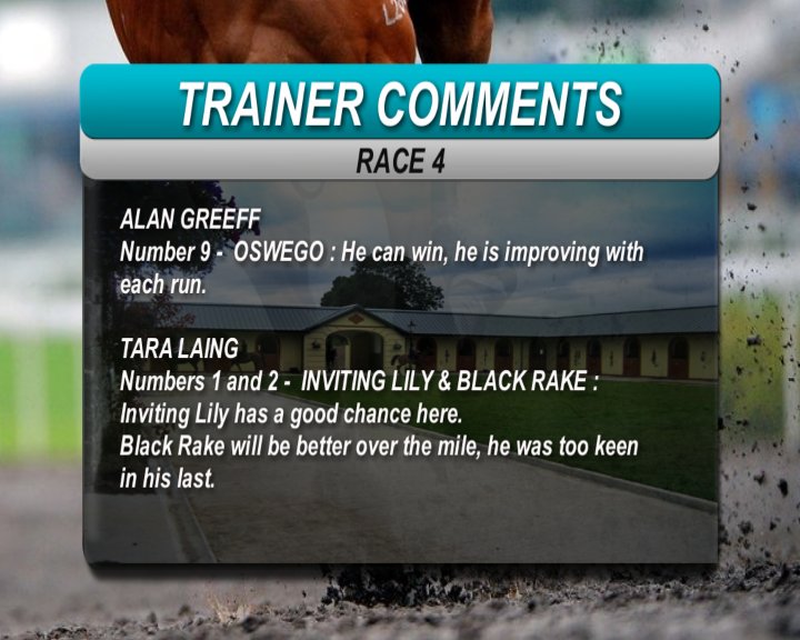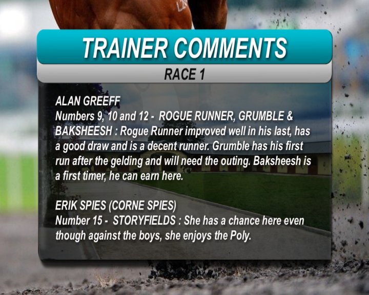 Greeff/Gould the talk race 1. Andrew won't be in town to put the plan in place.