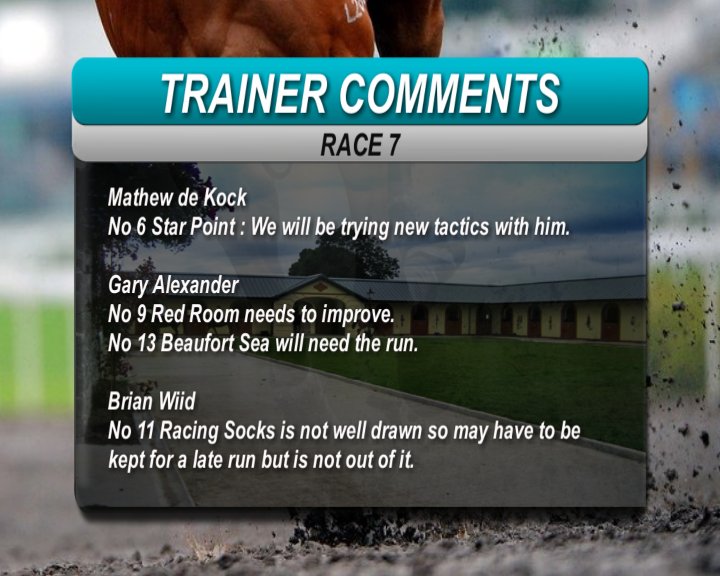 Race 7 8 runners - 6-5-3-7 (draw 1 beaten 8.75l)