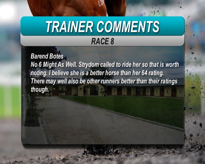 Me think that MA horses will be on a holiday today. Places will be fine.