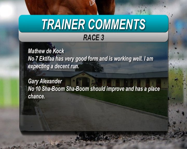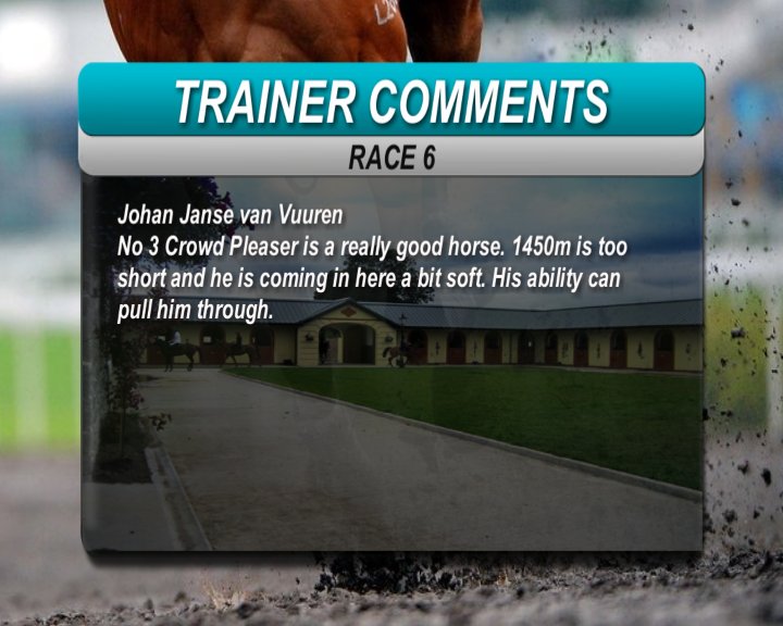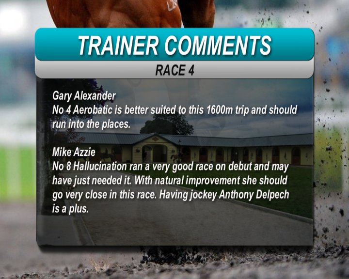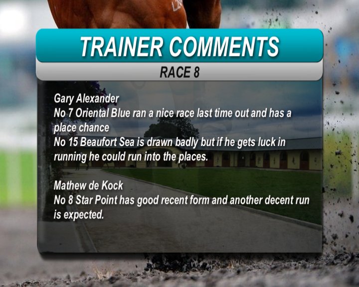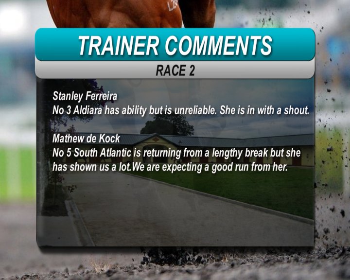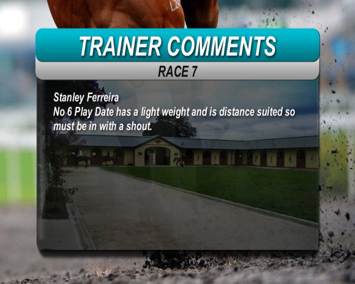 Overall she should be the one to beat but I must point out that my horses have not seen a grass gallop for 3 months because of the hard going. Only sand training work.This could catch us out in the last 200m, in this, her first run back. We hope not....[/quote]