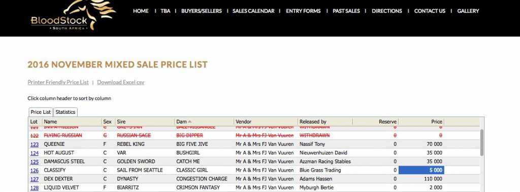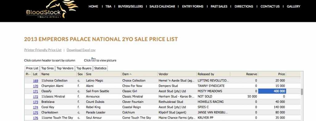 9 years 5 months ago12 OASIS QUEEN MR A & MRS FJ VAN VUURENStrydom Pierre 5000.00Gazza wrote: It was 50k not 5k i seem to recall