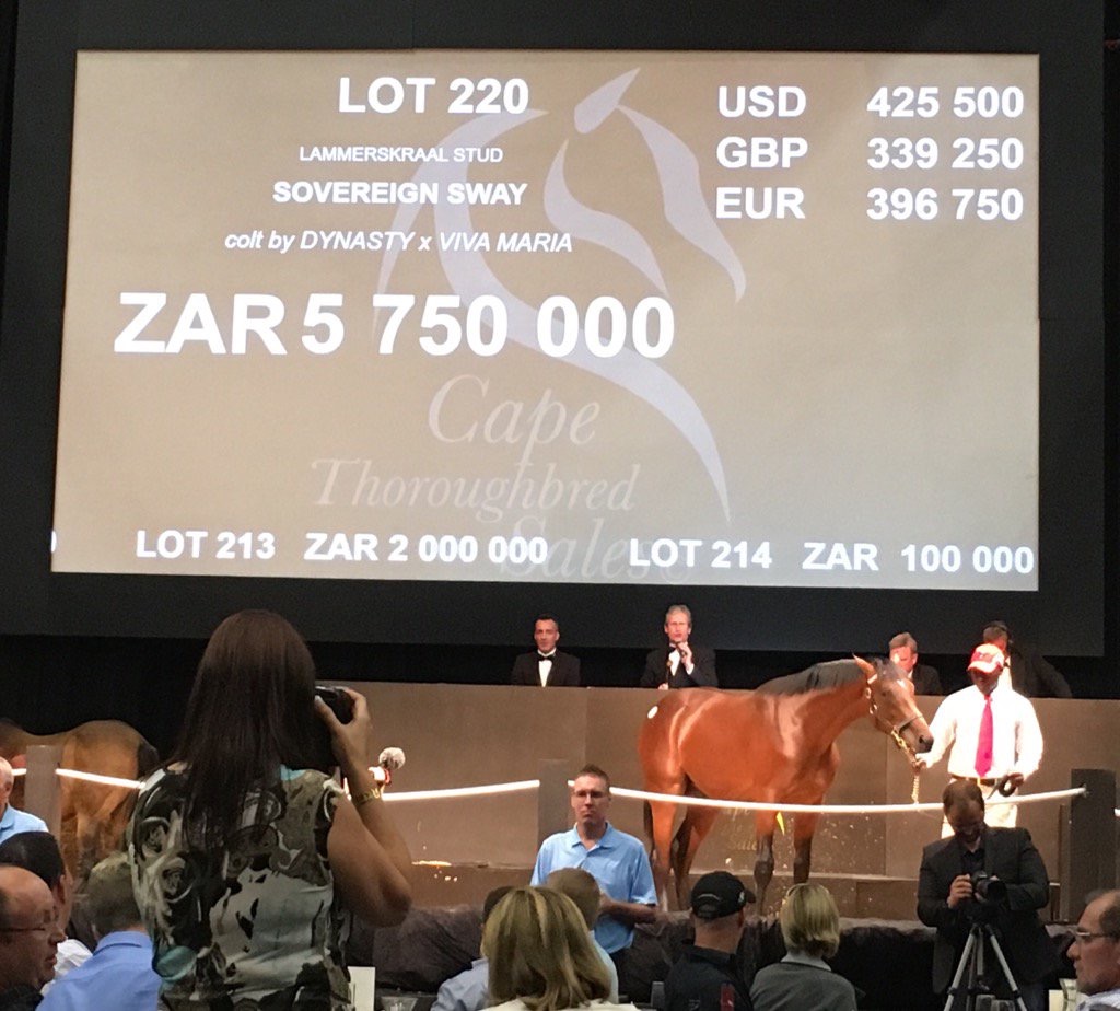 top price 6bar for a trippi colt coolmore,also bought a captain al filly for 1,9bar.Bernard Marais bought a captain al colt by ebony flyer for 4,5bar,Justin Casse bought a frankel filly for 4bar and a trippi filly for 2 bar.China horse club bought captain al colt for 3,75bar.