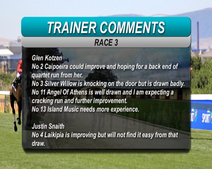Race 3: Silver Willow is the one to beat. Angel of Athens is coming to hand and we expect further improvement. She has an ew chance. Osca has been priced up favourite and could justify if improving on fair debut.