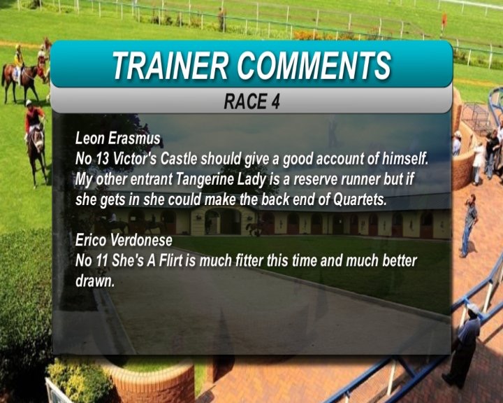 Race 4: Cat's Whiskers 4-1 (Baulked for a clear run last run, Big Runner!!!!!)