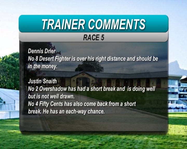 R5) Despite trying to pull off the 4-timer, I think Overshadow is the one to be with. Put Delpech on Blackmore and I'd make him the one to beat, he is weighted to finish ahead of my selection. Just find it strange that Kannemeyer hasn't considered trying another jockey on this horse. A one time winner from 25 outings yet this horse is ultra consistent, try something different.