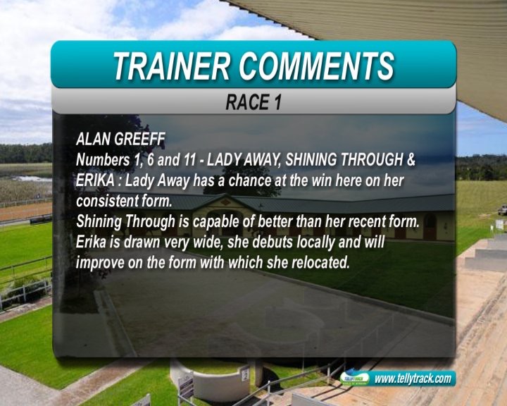 Lady Away race 1 been fitted with blinkers. Lots of pace in the race and she should be able to come from a few lengths back and win.