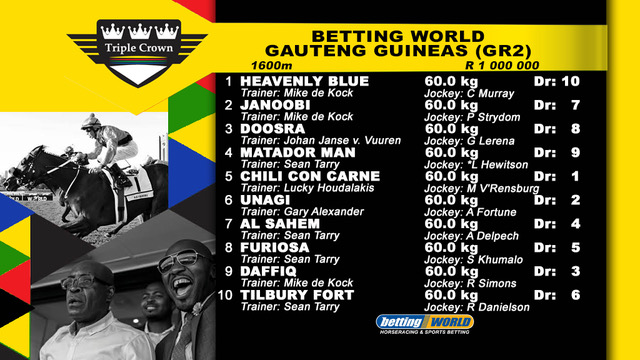 Final field for the R1-million Betting World Gauteng Guineas (Grade 2)(1st Leg SA Triple Crown) over 1600m at Turffontein on Saturday 4 March