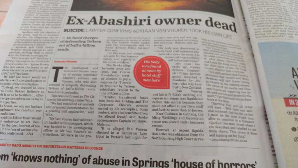 9 years 3 weeks agoDebi wrote: In the Citizens article they say Van Vuuren gassed himself ....