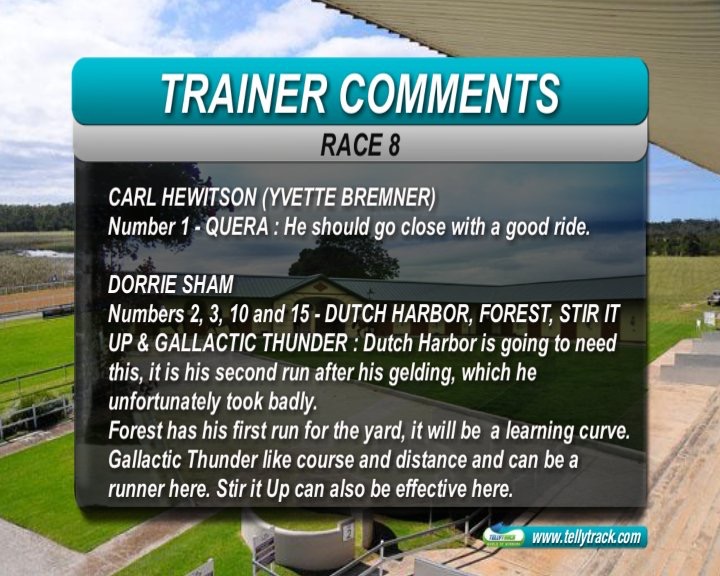 dorrie sham trainer comments says : Dutch harbor is 2nd up from gelding operation and will be needing this as it didn't take to op well :dry: