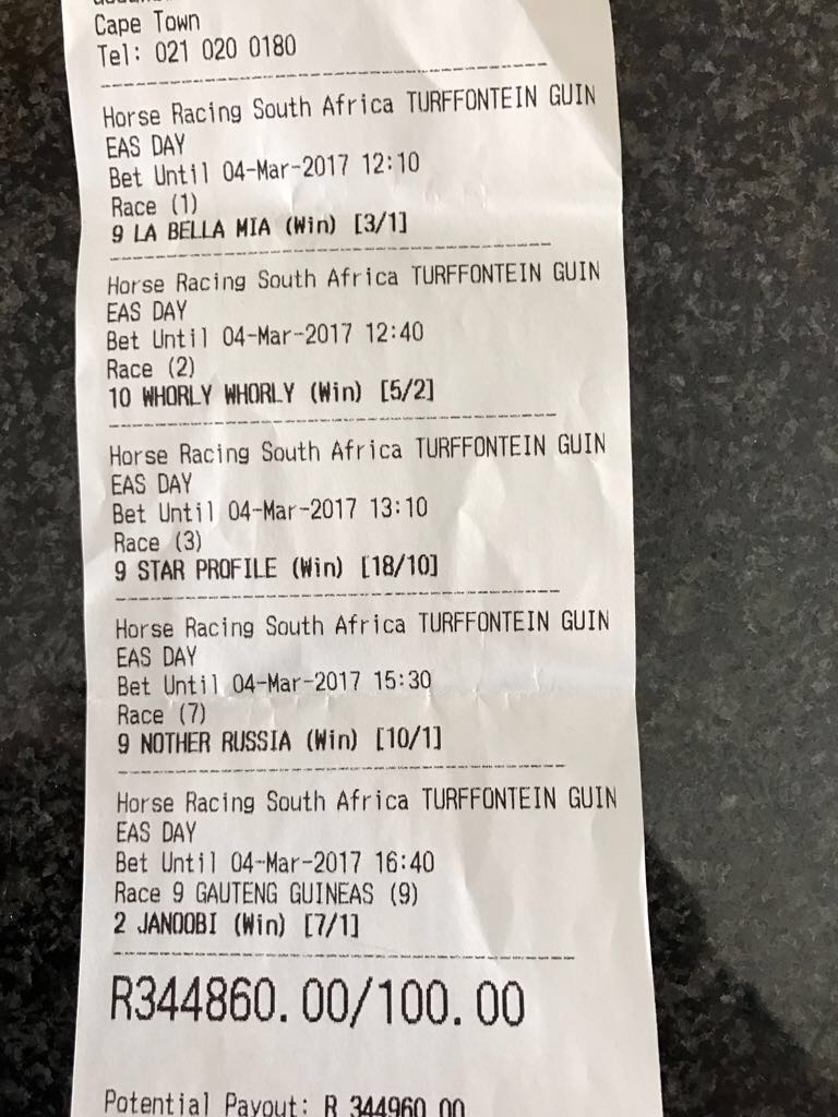 i saw this ticket on sunday, its somebody who plays soccer bets and not fully into horses