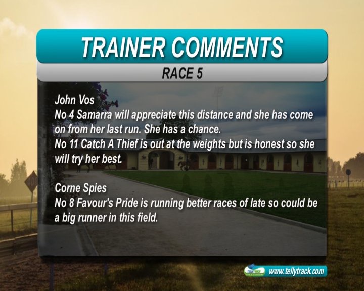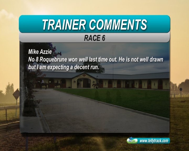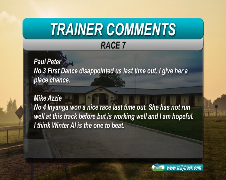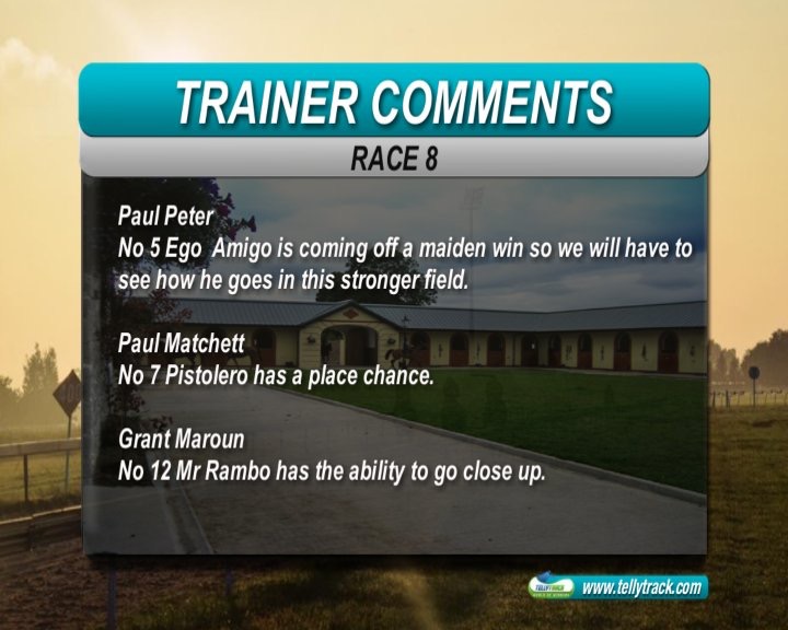 Race7: She's Foxy won easily last run, in a good time, but did not beat much. She has an awkward draw here, but we are expecting a good run. This is a competitive handicap, but hopefully she can show the necessary improvement to win again.