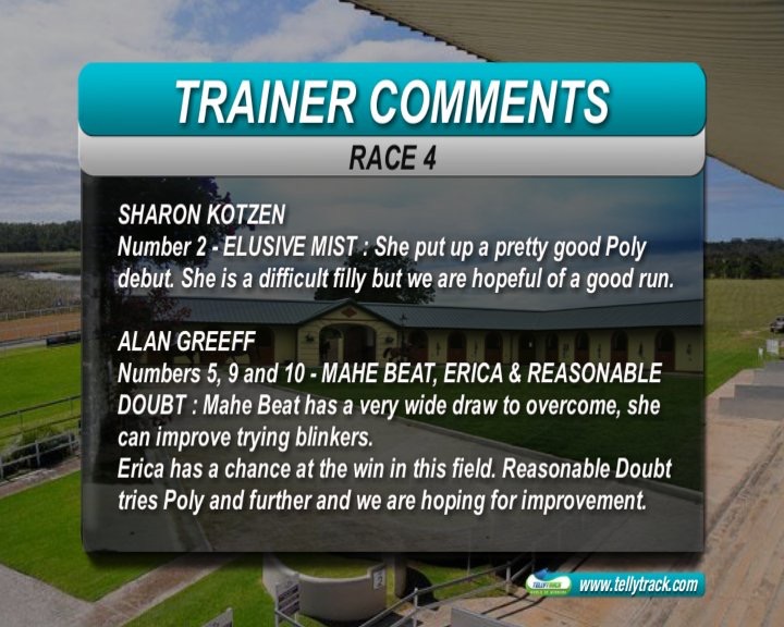 I won't argue about race 4, as you have picked the best horse there ( but we will be trying to upset with Elusive Mist.) However, I must disagree on the others: