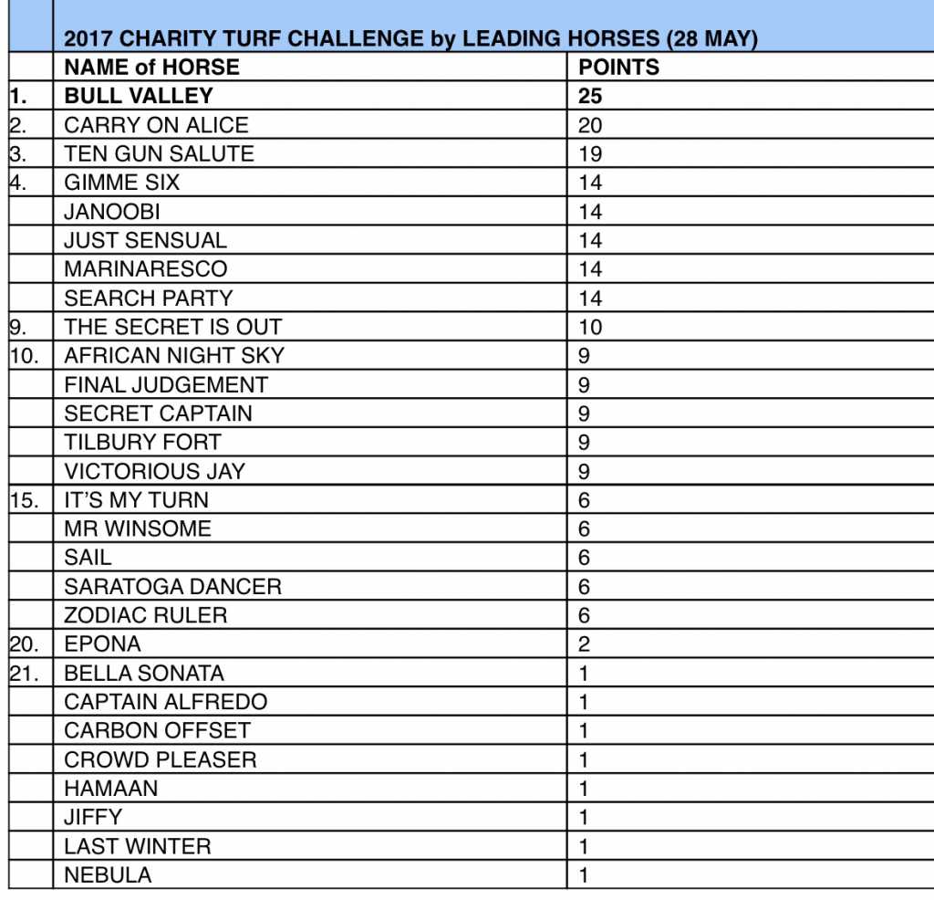 The leading horse point scorers are as follows: