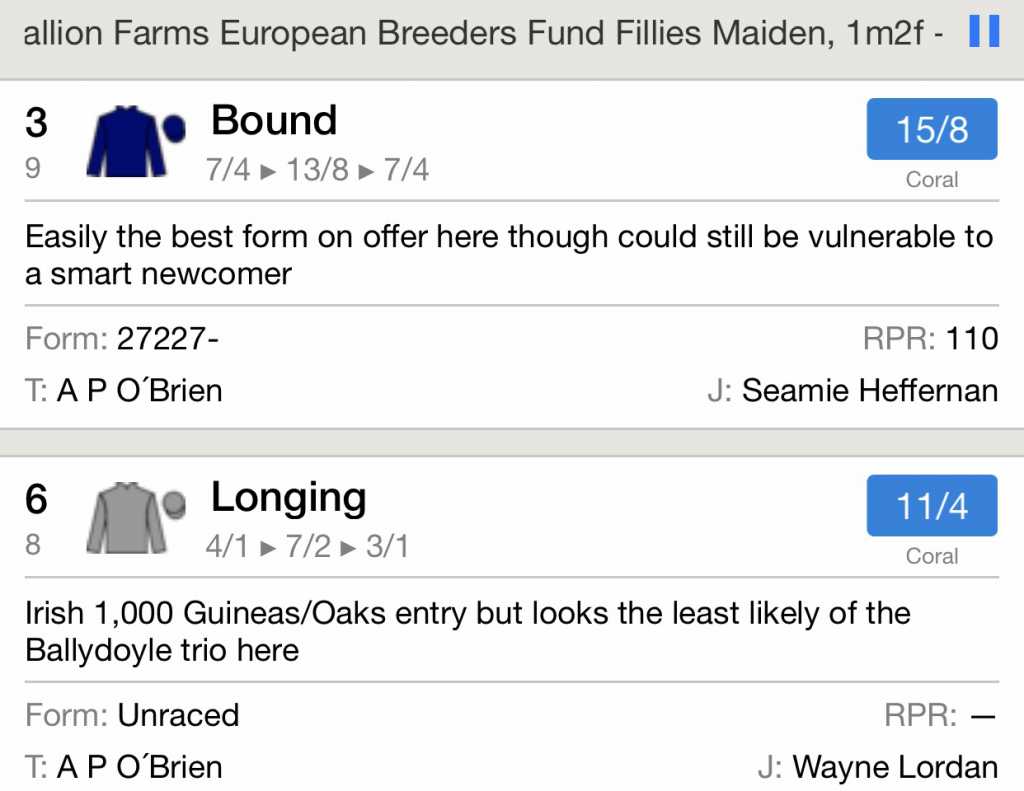 Insayshable 15/2 Lads 7/1 Hills Corals 330p
