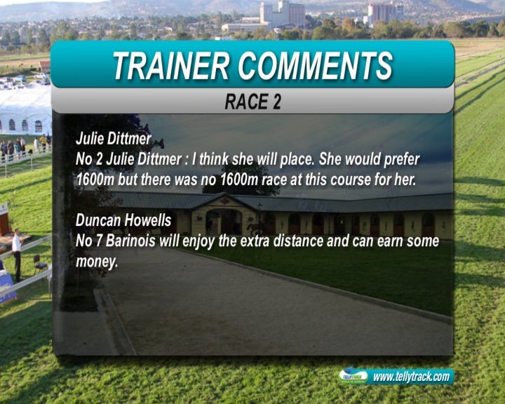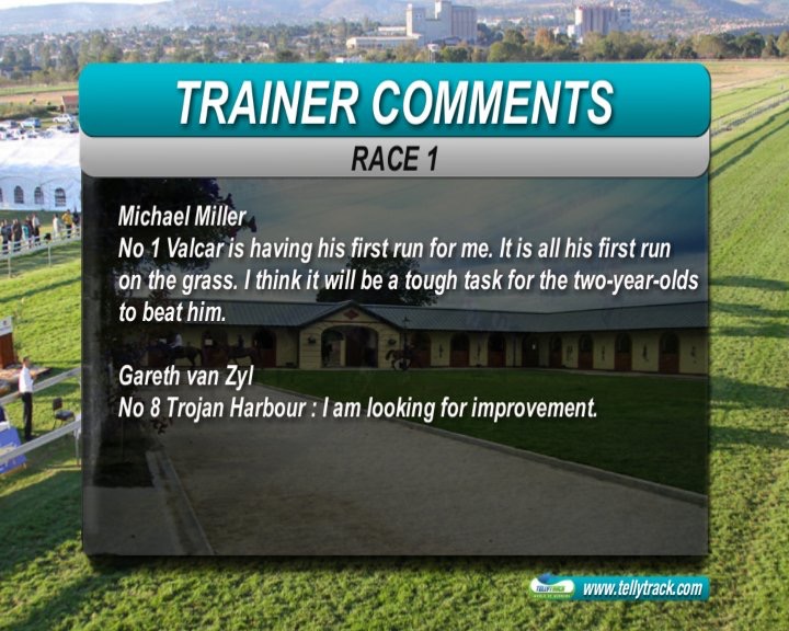 T.O.D. how about those trebles? Mine Race1 Valcar (Win) unto Race2 Barinois (Place) Race4 Cape Fling (Win)