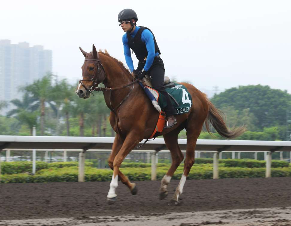 Neorealism’s regular work rider, Shinjiro Kaneko, wears what appears to be a very slick and sporty set of goggles when he takes Neorealism out for his light work on the Sha Tin all-weather track but this is not just satisfying the Japanese taste for pop fashion.