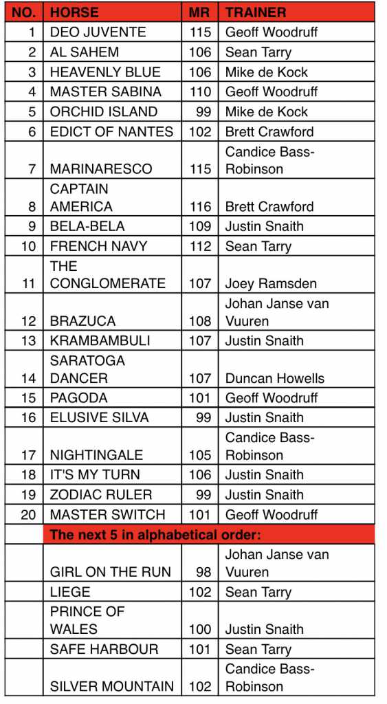 The first VDJ Log has been issued by Gold Circle and serves as a clear indication as to who would be in the field if the race was run tomorrow. “We have not considered Hat Puntano at this stage as he has yet to win beyond 1600 metres and has not been seen in action since July 2016,” said Gold Circle Racing Executive Raf Sheik. “Hopefully he will make his South African debut in the near future,” he added.