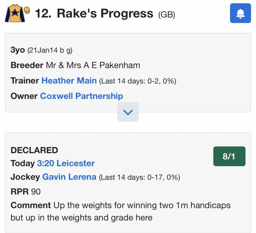 Lerena riding at two meetings ( Leicester and Windsor ) but only the two mounts