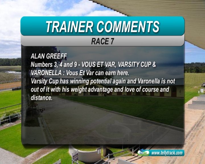 Greeff to have a few in the money today, Varonella should have a great chance at the weights...