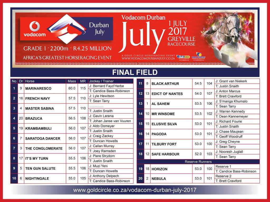 Re: Durban July Final Field