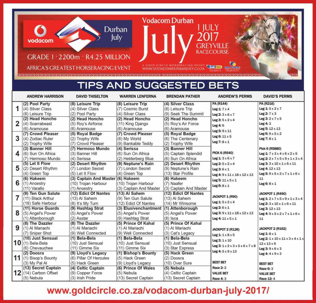 Finally the biggest raceday of the year arrived ... its the VODACOM DURBAN JULY!!!! and here is Zietsie's opinion