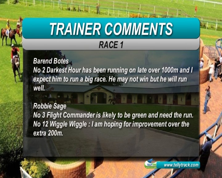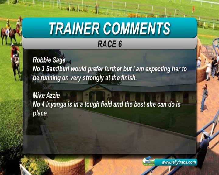 Captains Girl wasn't aimed at this race as she has recently returned from KZN. But it would have been silly to ignore this race at the weights.... She steps up in class but if she is fully over the journey, she must have a good chance. The race will tell...