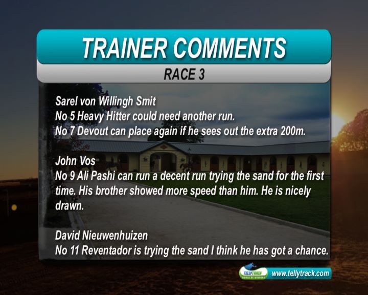 Race 5 (3) In Full Regalia (20/1). Has relocated to Kimberley and brings nice PE form.