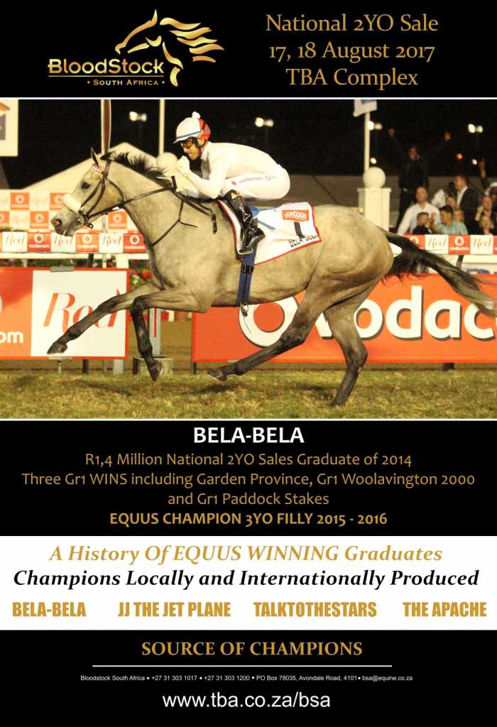 Among the best horses sold off past National 2YO Sales include recent Equus Champions Bela-Bela and Talktothestars as well as such G1 winners All Afire (Golden Slipper), Asylum Seeker (Golden Slipper), Fez (Premier’s Champion Stakes), Rock Opera (Allan Robertson Fillies Championship), Jackson (Investec Cape Derby, Champions Cup, Daily News 2000), Lyrical Linda (Garden Province Stakes), Talahatchie (Premier’s Champion Stakes) and Zaitoon (SA Fillies Classic), to name a few.