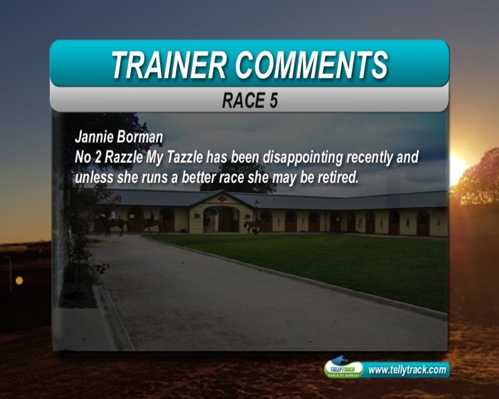 Race 5 (6) Miss Argentina. She seems to improve with every run at Flamingo. Going for a hat-trick. With 52.50kg she must have a big say although it is a very competitive fillies and mares race.