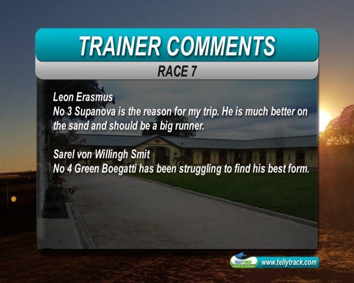 R7 Supanova had some decent runs on the Vaal sand, if also performing on the Bingo sand he should win imo. Mr McSteamy the danger.