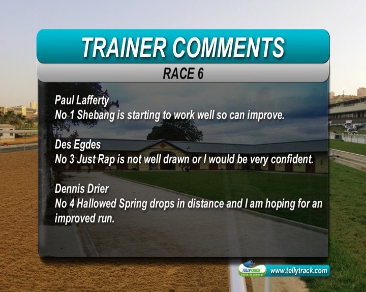 Race 2: Blazing Heart(10) 6-1 This horse ran a cracker after been hampered at the 600m. He was awkwardly ridden from there but re-gathered his stride to run 4th. He has pacifiers on for the first time and goes the extra 200m which will suit. He beat Turf Conqueror(1) 6-1 so should beat him again. Ratso Rizzo(2) 5-1 is held by TQ on their last run, well it was a short head. Chilli Affair(4) 13-2 will enjoy the 1600m better than the 2000m and will be there in the placings.