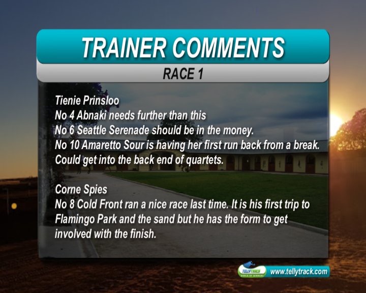 R1 Spies horse could win but first time here etc, not for me at the price. Jet Sailor didn't meet much imo so jury still out and I prefer the look of the 2 Prinsloo horses, Judging by the trainer comments Amoretto Sour won't be at 100% so I'm happy to go with Seattle Serenade e/w who has had some fair efforts over c/d.