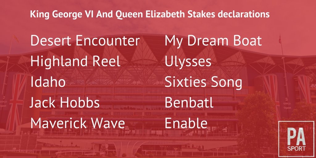 Highland Reel is drifting because of the forecasted soft conditions for Saturday. Might not run if it gets really bad. While Enable looks special, I'm on Jack Hobbs @ 5/1. Very tricky horse to get right. Needs the ground with as much cut as possible. Didn't get it at Royal Ascot. Might get that on Saturday. When he's on song, he's right up there with the best around.