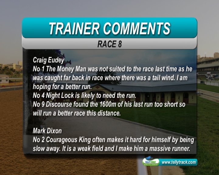 Race 8 : Very interested in DOM SEGUIDOR ch.g 4y 2013 here or else revert to NIGHT LOCK b.g 6y 2010 with a serious challenge from THE MONEY MAN b.g 5y 2012