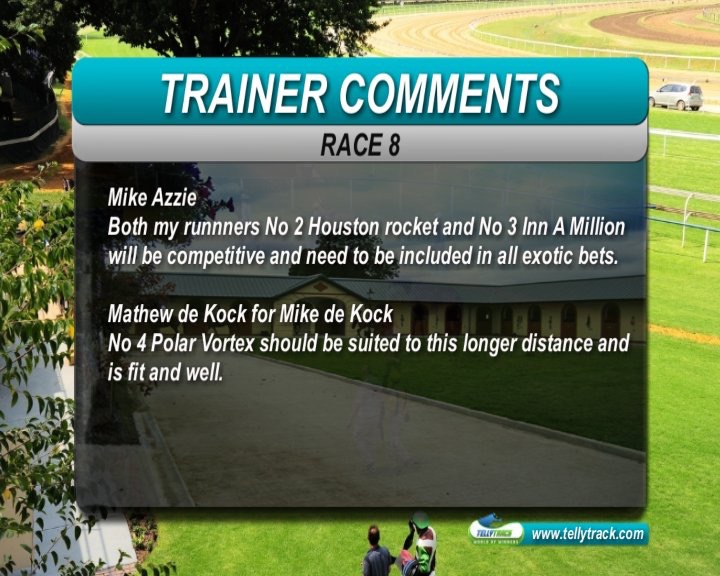 R8 Yet again a tough race with Azzie having a strong hand. Many needed in this leg. One I feel may be of place value for a top 4 is watch my dust. Seems to take a while to unwind as can be seen with poor runs on the tight inside track. Best runs have been on this course and maybe one worth including in quartets at a large price.