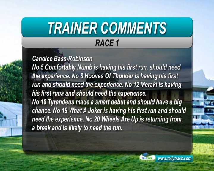 I have Zanadu running in the 5th - the Maiden 1600m. Here's what I can tell you :