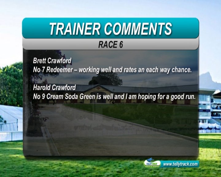 Race 6 7 redeemer (was flying in the last start) 2 commander bond 9 cream soda cream (low weight)5 dex Dexter horse to watch 3 dragon flame box quartet