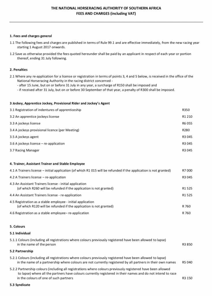 If anyone is under any misguided impression about who pays for the show, have a look at some charges owners are forced to pay. My opinion - there should be ZERO charges to encourage participation. Owners pay enough to get their animals to race.