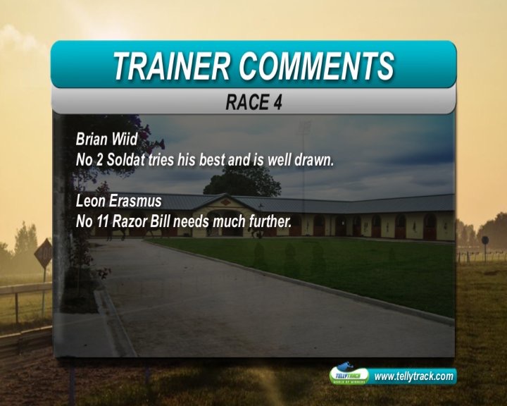 R4: Loyal Lieutenant can't be opposed on form; the opposition appear very moderate, but if LL somehow falls over, it should lie between Soldat, Mister Lister and London Fog; Caribbean Empire represents a stable in form , tries blinkers after a break, but really needs major improvement to even place