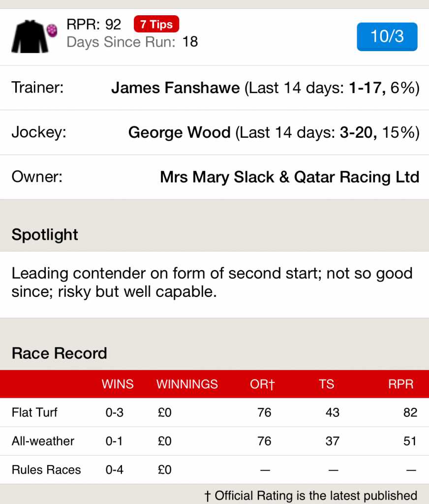 Kempton 7-10. I've punted it ew at 9/2.Its come on well from its debut.