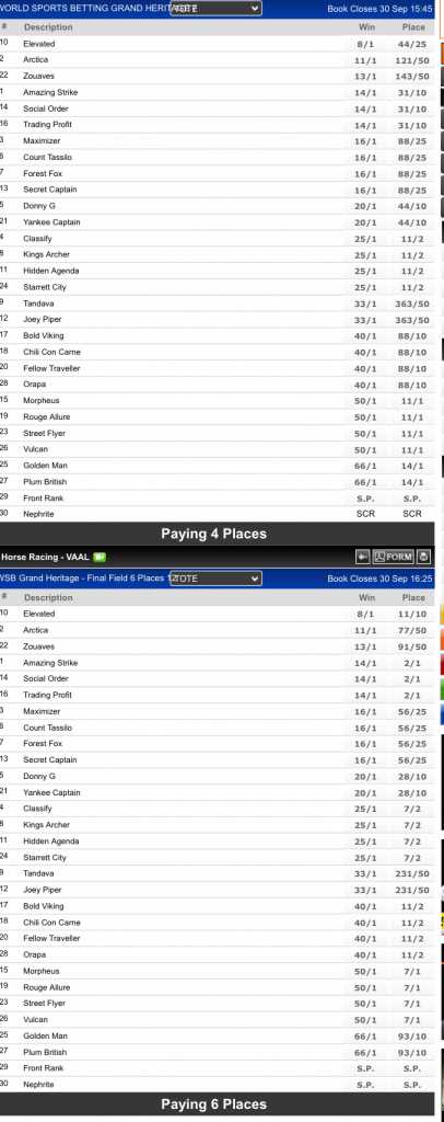 Most bookies are betting, 4/5/6 places