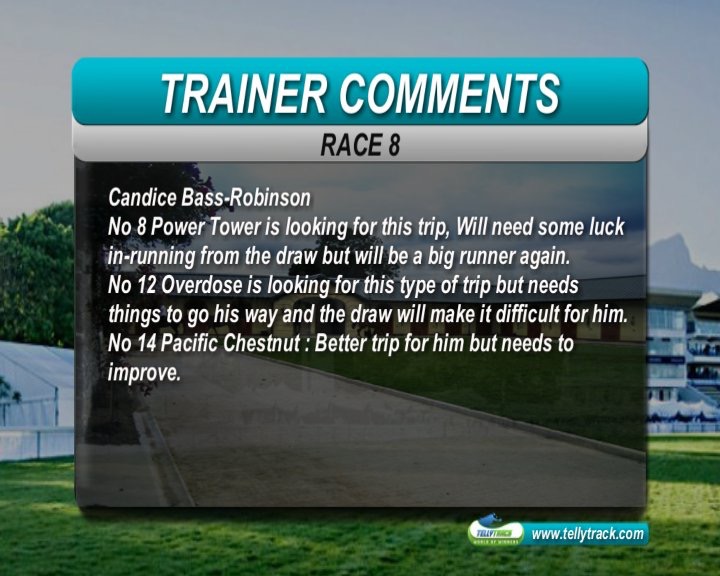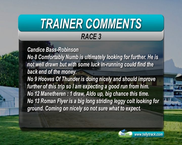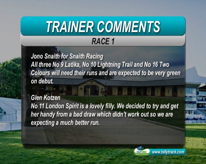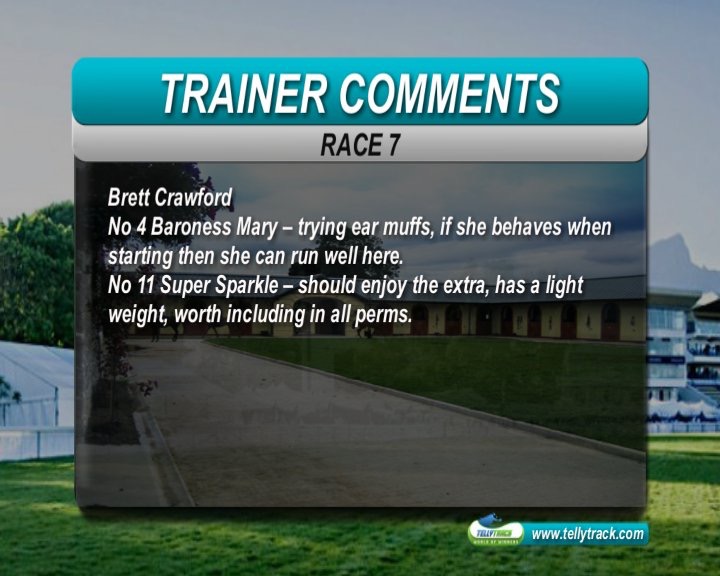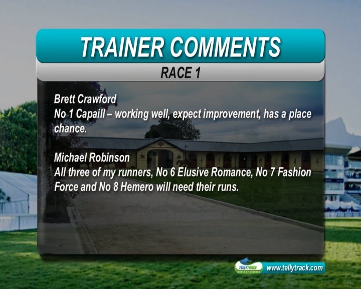 Race 1:Travel Guide and London Spirit the best of the raced runners, but plenty of first timers, some very well bred. Gallops have been available recently, so expect a number of first timers to have had the benefit of a grass gallop. Elusive Romance is a nice filly, and has been on the grass. Dam was a sprinter, and full sister Sun at Midnight best at 1200m. Would not be surprised if she is in the money-but difficult to assess the strength of this field.